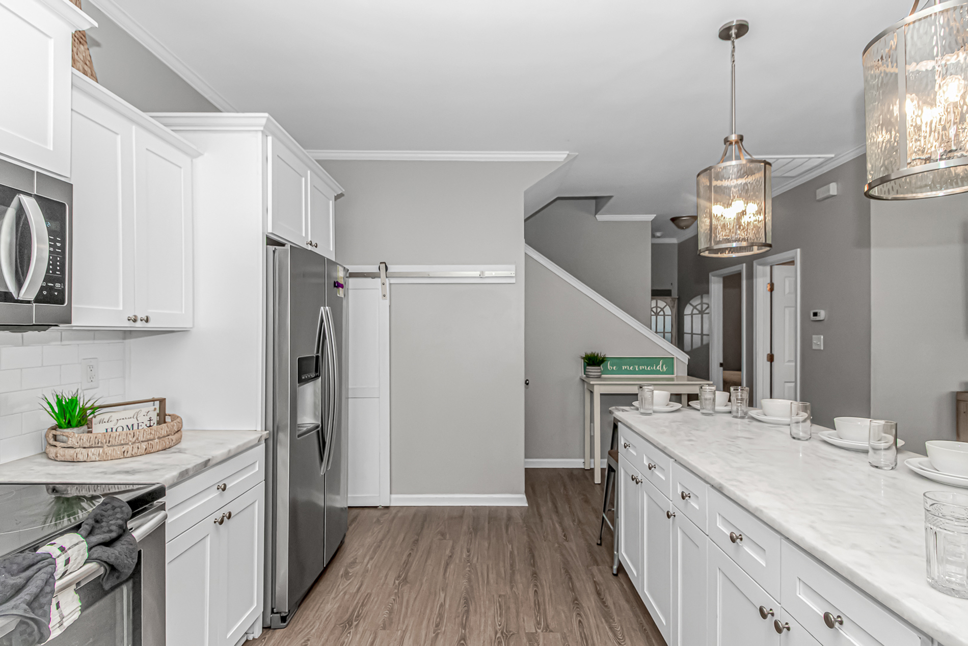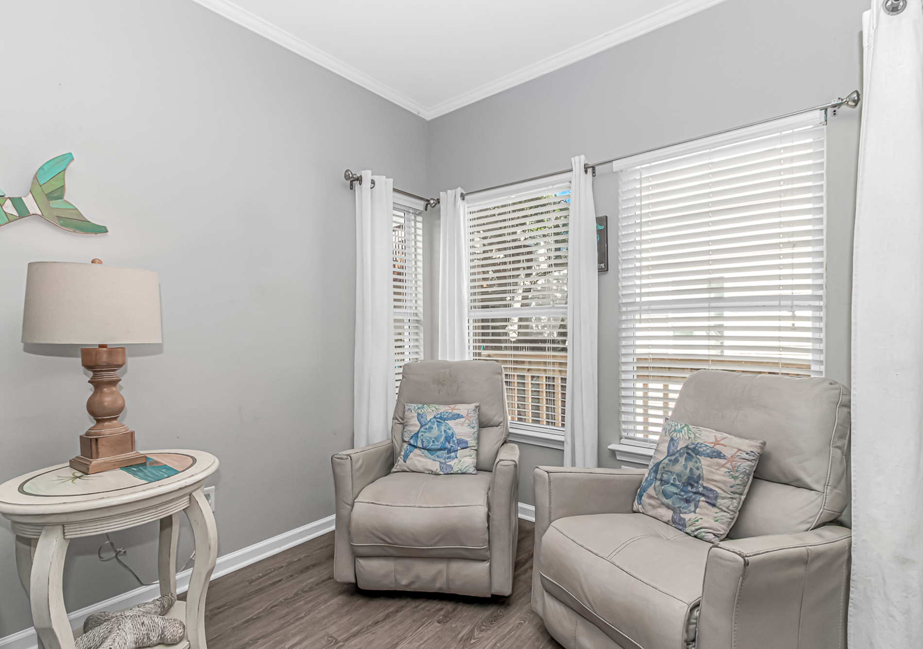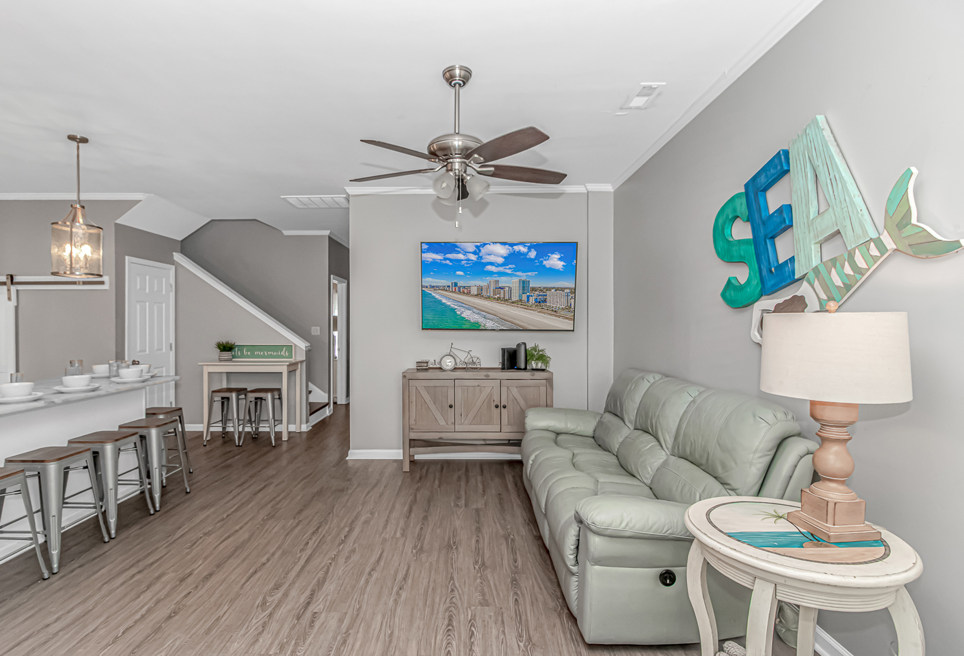 You will be greeted with a fully functional kitchen with all the accessories you would need on your vacation including: Coffee Pot and Keurig, dishwasher, oven, microwave, and of plenty of pots and pans.