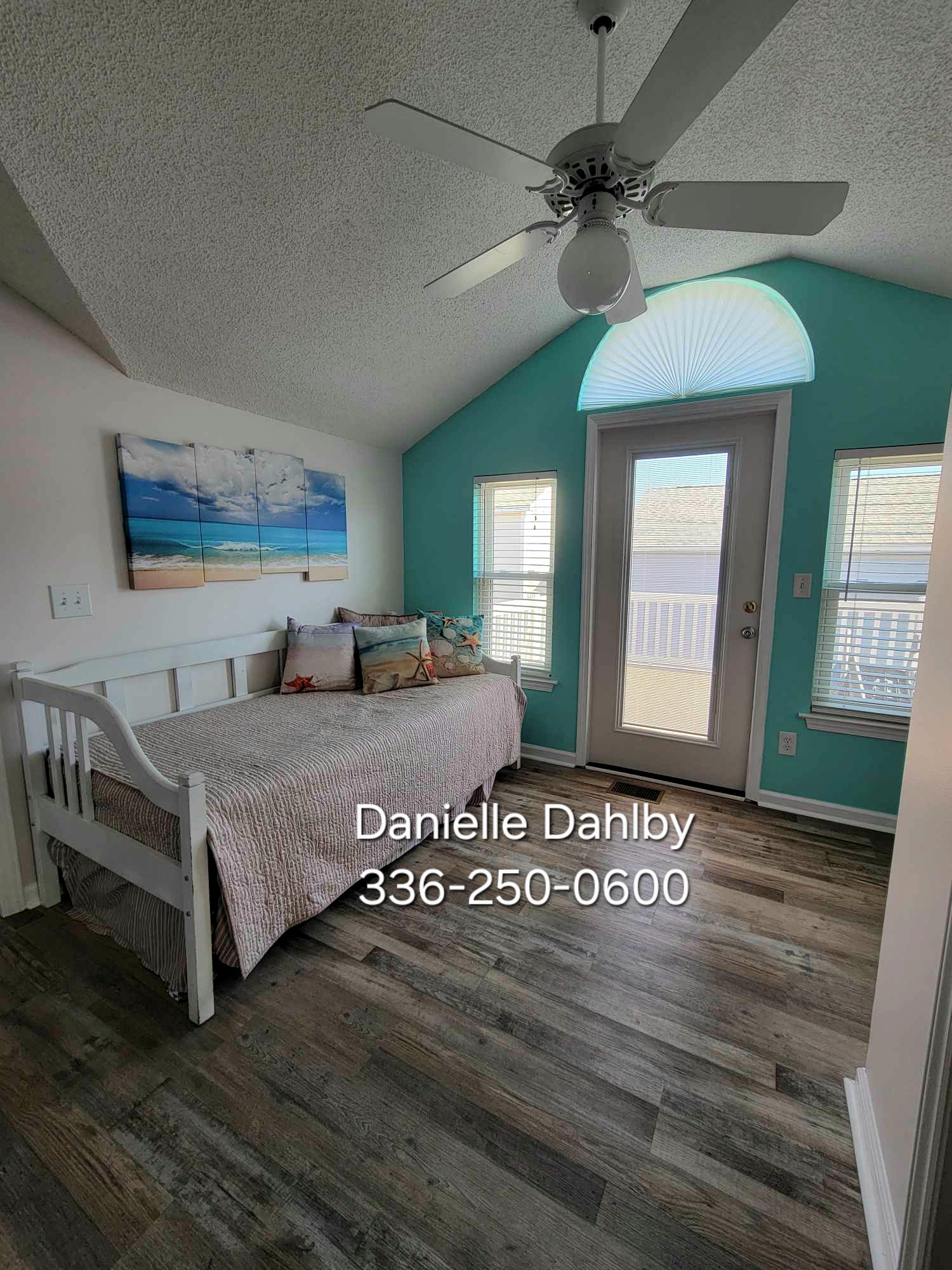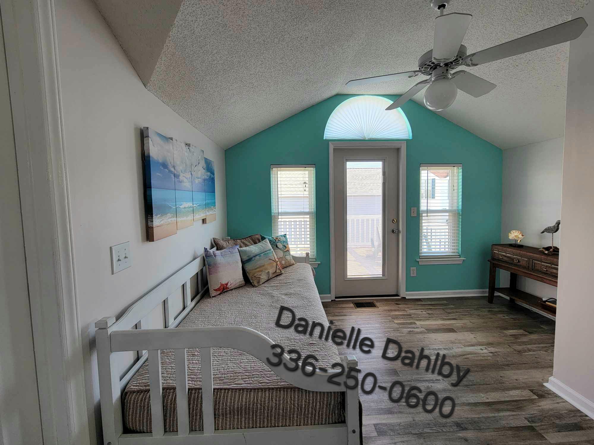 The upstairs area also has a full bathroom with a shower/tub combo, a separate deck and a landing area. The landing area has a study nook and a twin daybed with a twin pop-up trundle bed. This can be used as two separate twin beds or put together to create a king bed.