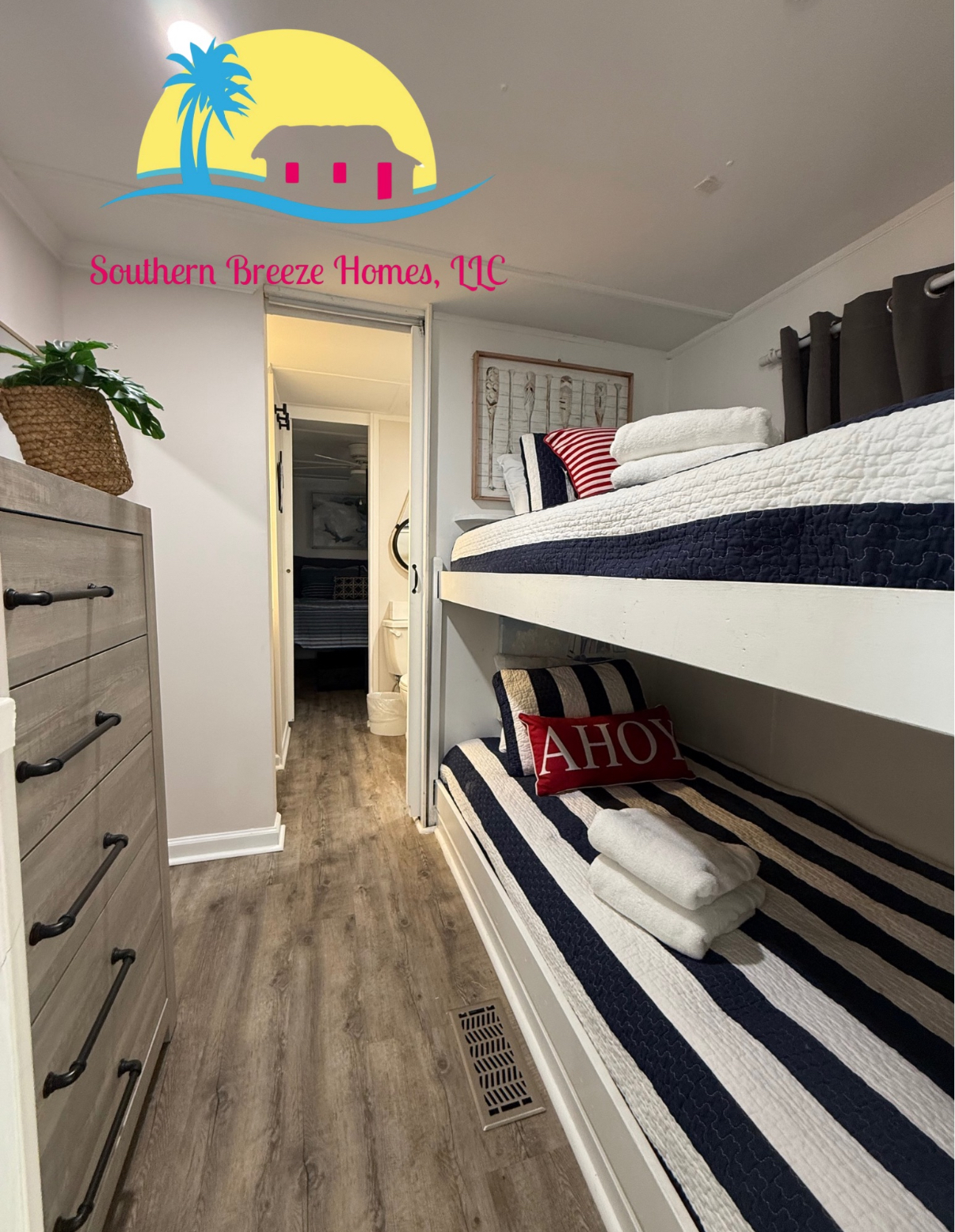 This 3-bedroom, 2-bathroom cottage features a king-size bed, a queen bed, and two twin-size bunk beds, enough for comfortable sleeping for up to 6 guests. The property includes a complementary golf cart for easy access to all the campground's amazing amenities.