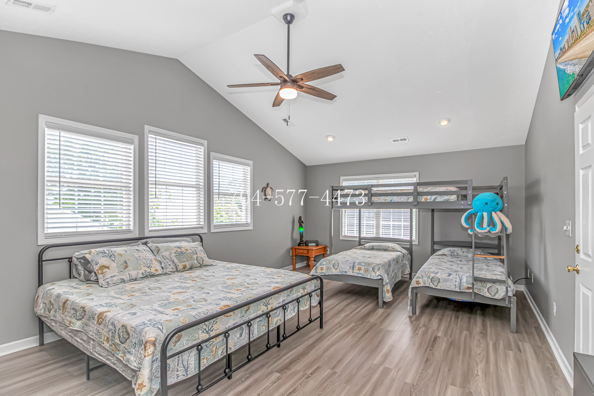 * Sleep in comfort - 4 king size beds and a set of bunk beds full over 2 twins.