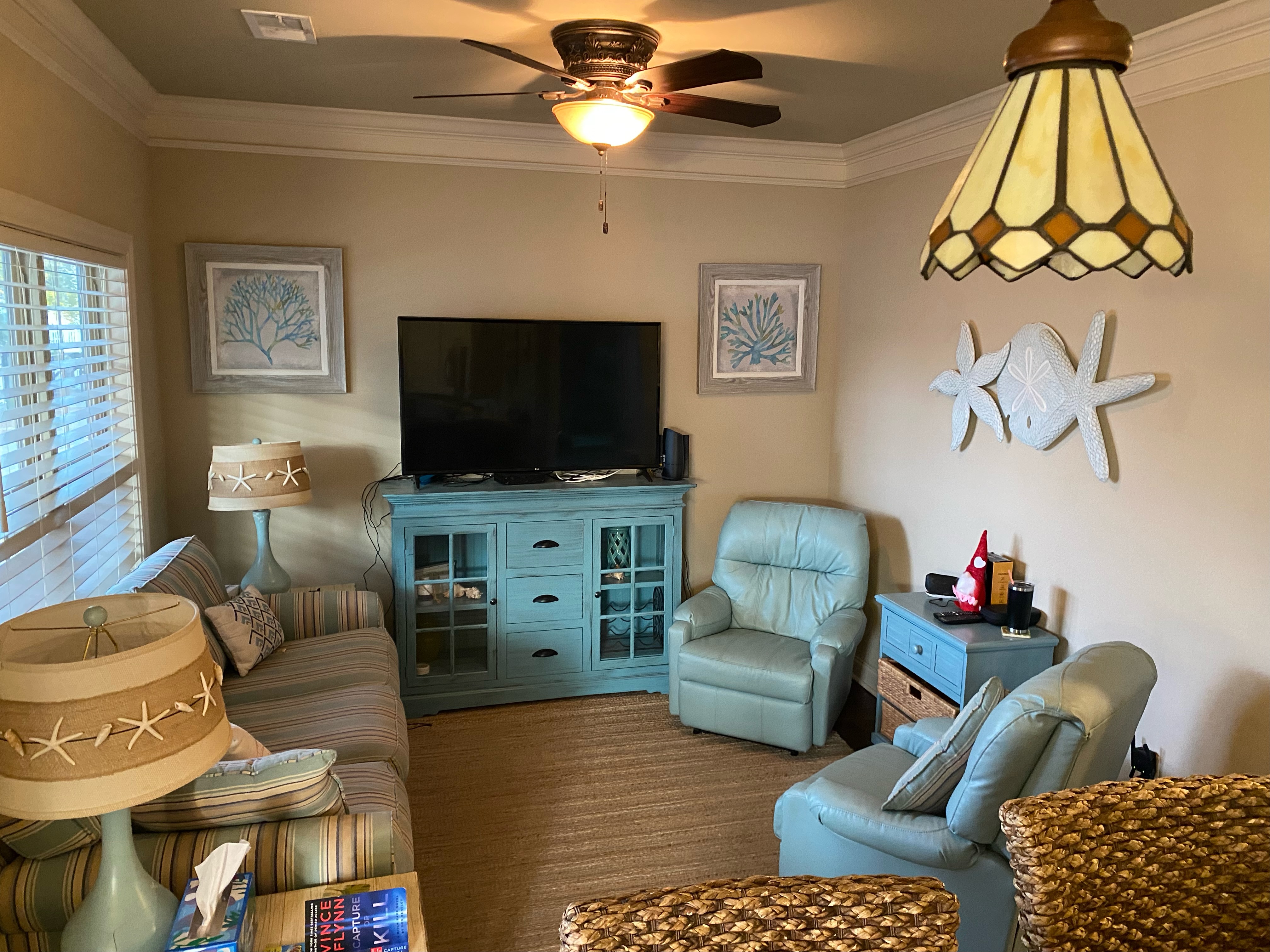 Breezy Hutt awaits you and your family offering many great amenities to make your stay more enjoyable! A short golf cart ride to direct Ocean access, two playgrounds, basketball courts and more!! Many other amenities are just a close proximity. This home is located on a quiet road that has minimized traffic vs other areas of the campground. Beautiful 3 bed 2 bath stilt house. Our home sleeps up to 8 people. The master bedroom has a king size bed and private bathroom, the second bedroom has a queen bed and shares a bathroom with the 3rd bedroom which has full over full bunk beds with a trundle. We have a full kitchen including a Keurig and all the accessories you would need on your vacation as well as a washer and dryer. We have a large deck with outdoor seating that includes an outdoor tv just outside the master bedroom as well as a seating area under the house with a TV. The living room and all bedrooms have cable tv and we also have WIFI. There is a camera facing the parking area under the house. It does not face the outdoor entertainment area and audio is turned off. This is for your protection as well as ours.